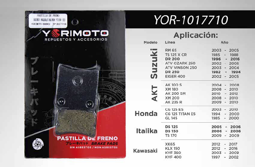 Yorimoto, líder en repuestos para motocicletas, ofrece productos de alta calidad y tecnología japonesa avanzada. Nuestro portafolio optimiza el rendimiento y la durabilidad de su moto, garantizando satisfacción y confiabilidad. Con Yorimoto, elija la excelencia y la innovación que solo la ingeniería japonesa puede ofrecer.
